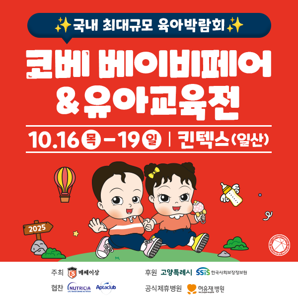 2025년 10월 16일(목)부터 19일(일)까지 일산 킨텍스에서 열리는 코베 베이비페어 무료입장, 5% 페이백 이벤트, 100% 당첨 이벤트는 임신·출산·육아·유아교육에 관심 있는 부모라면 꼭 방문해야 할 박람회입니다.